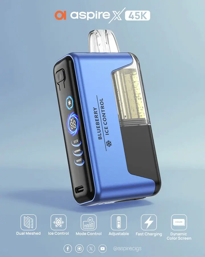 ASPIRE X 45K Puffs stands out because it gives you real control over your vaping style. Instead of a “one-style-fits-all” disposable, this device includes features that allow you to adjust your vape experience based on what you want at the moment—stronger clouds, smoother hits, or longer battery efficiency.